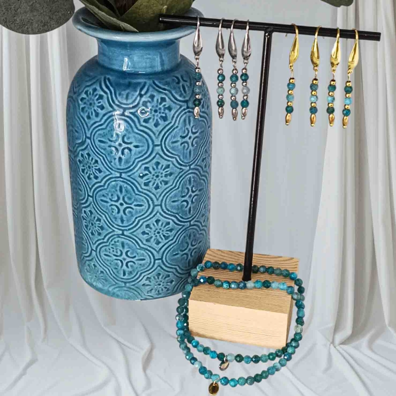 • Materiaal: Gemaakt van 4mm facet geslepen apatiet edelsteen kralen.