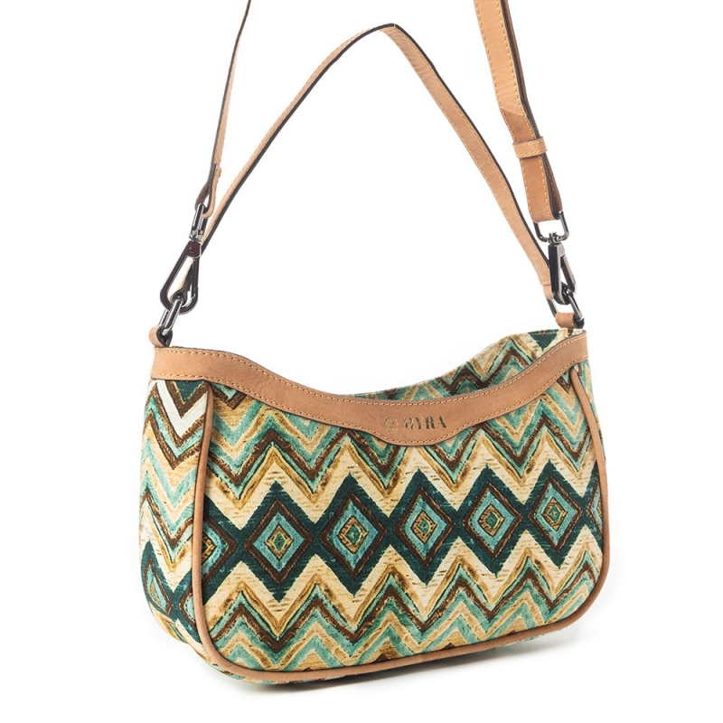 Chevron schoudertas van canvas en leer groen-crème - BONHO