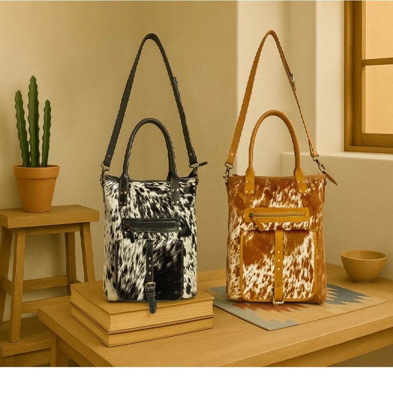 Materiaal: Leer, koeienhuid en canvas