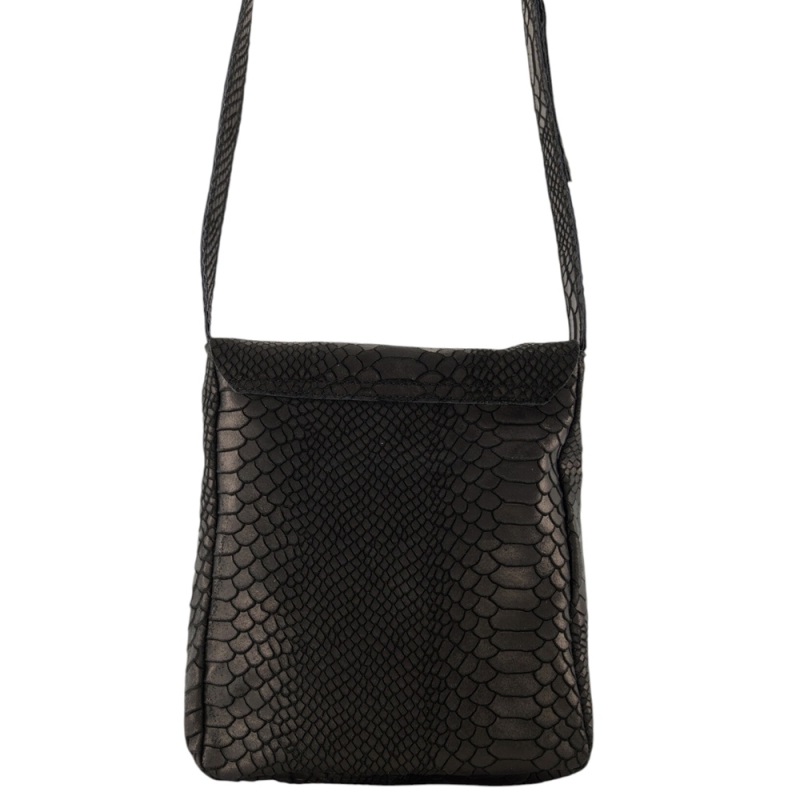 SNAKE een prachtige zwart leren crossbody schoudertas met een slangenprint. Stijlvol en tijdloos, ideaal voor dagelijks gebruik.