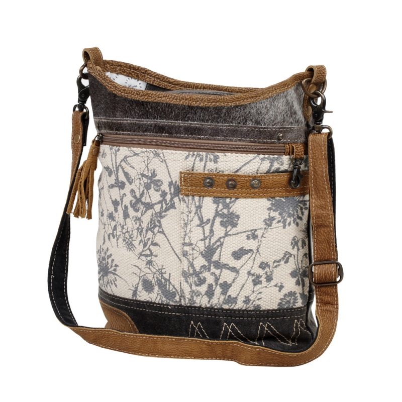 Let op: Alle tassen van Myra Bag zijn handgemaakt en uniek en kunnen qua print, koeienhuid, jeanssoort en afmetingen afwijken.