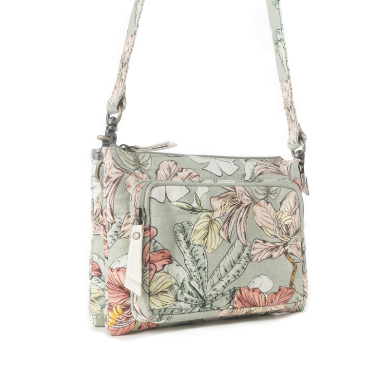 VINTAGE GARDEN crossbody canvas groen met bloemenprint
