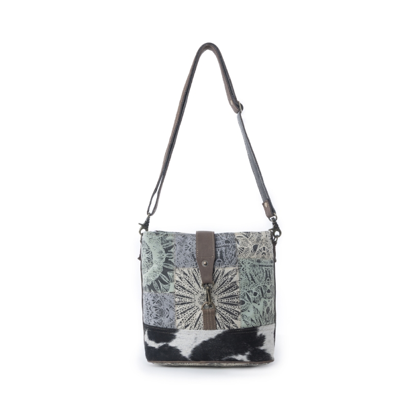 Let op: Alle tassen van Myra Bag zijn handgemaakt en uniek en kunnen qua print, koeienhuid, jeanssoort en afmetingen afwijken.